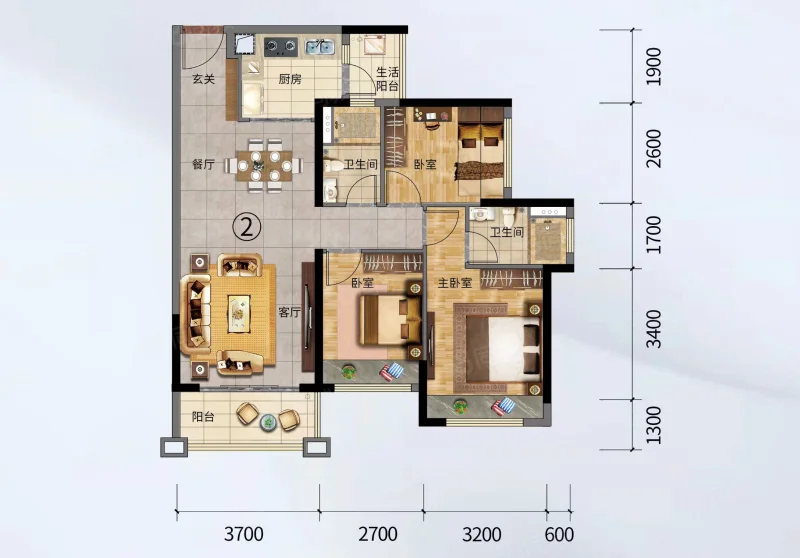 2 室 2 厅 2 卫