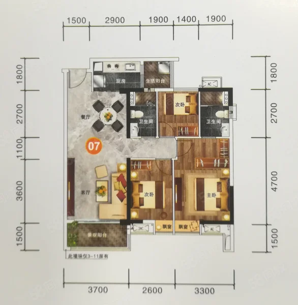 3 室 2 厅 2 卫