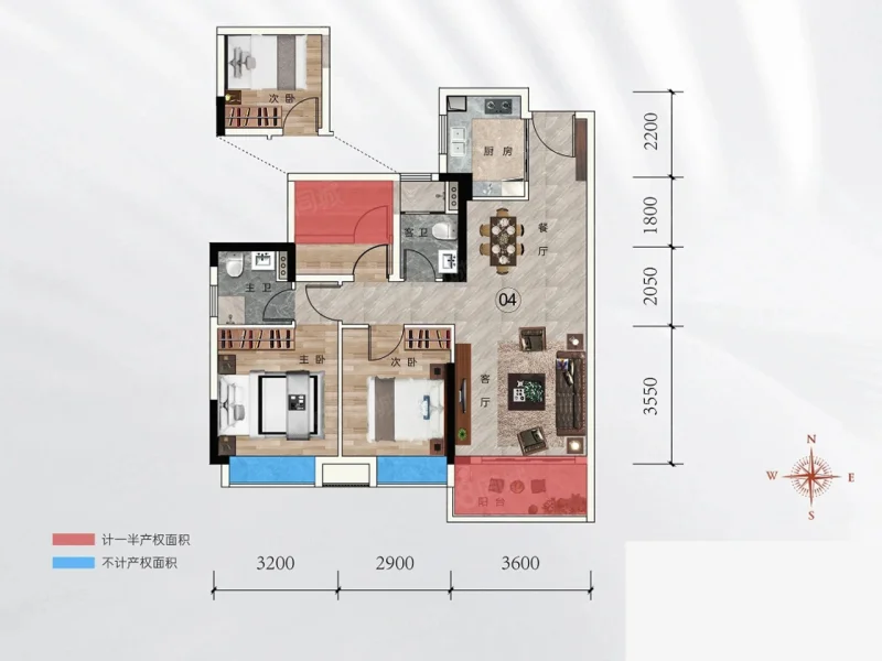 2 室 2 厅 1 卫