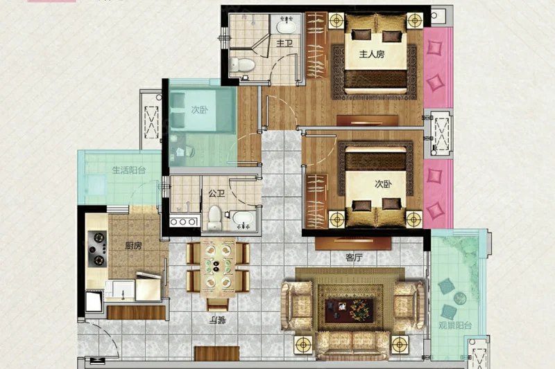 3 室 2 厅 1 卫