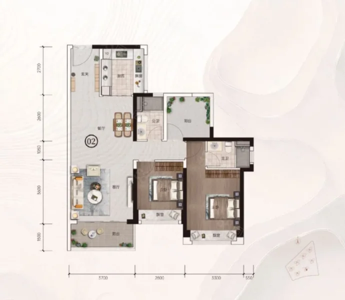 3 室 2 厅 2 卫