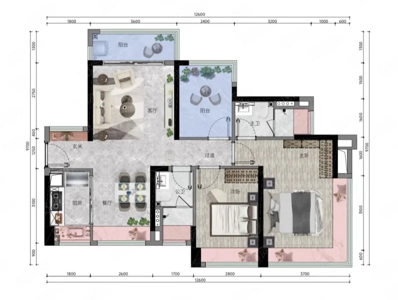 3 室 2 厅 2 卫