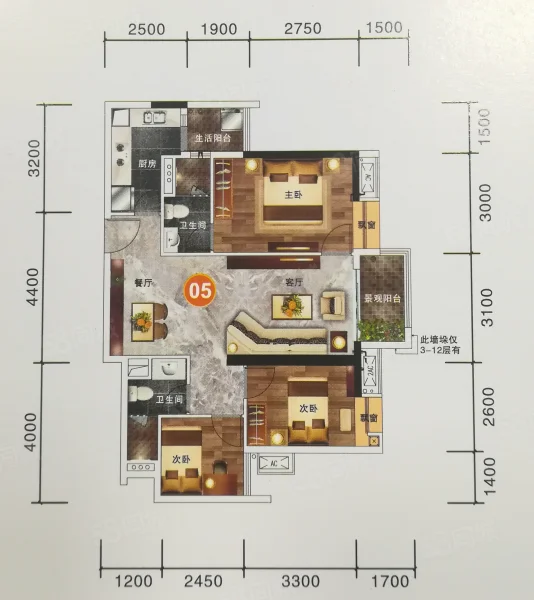 3 室 2 厅 2 卫